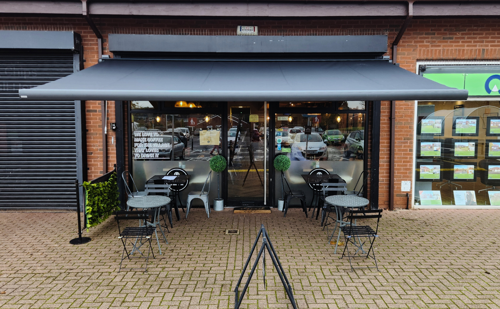 The Markilux MX-3 has been installed to both protect and enhance the outdoor dining area, creating a more comfortable and enjoyable experience for customers.